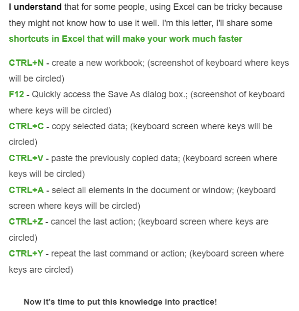 A great example of an educational newsletter is the following from Farizat-Excel Tips for All: